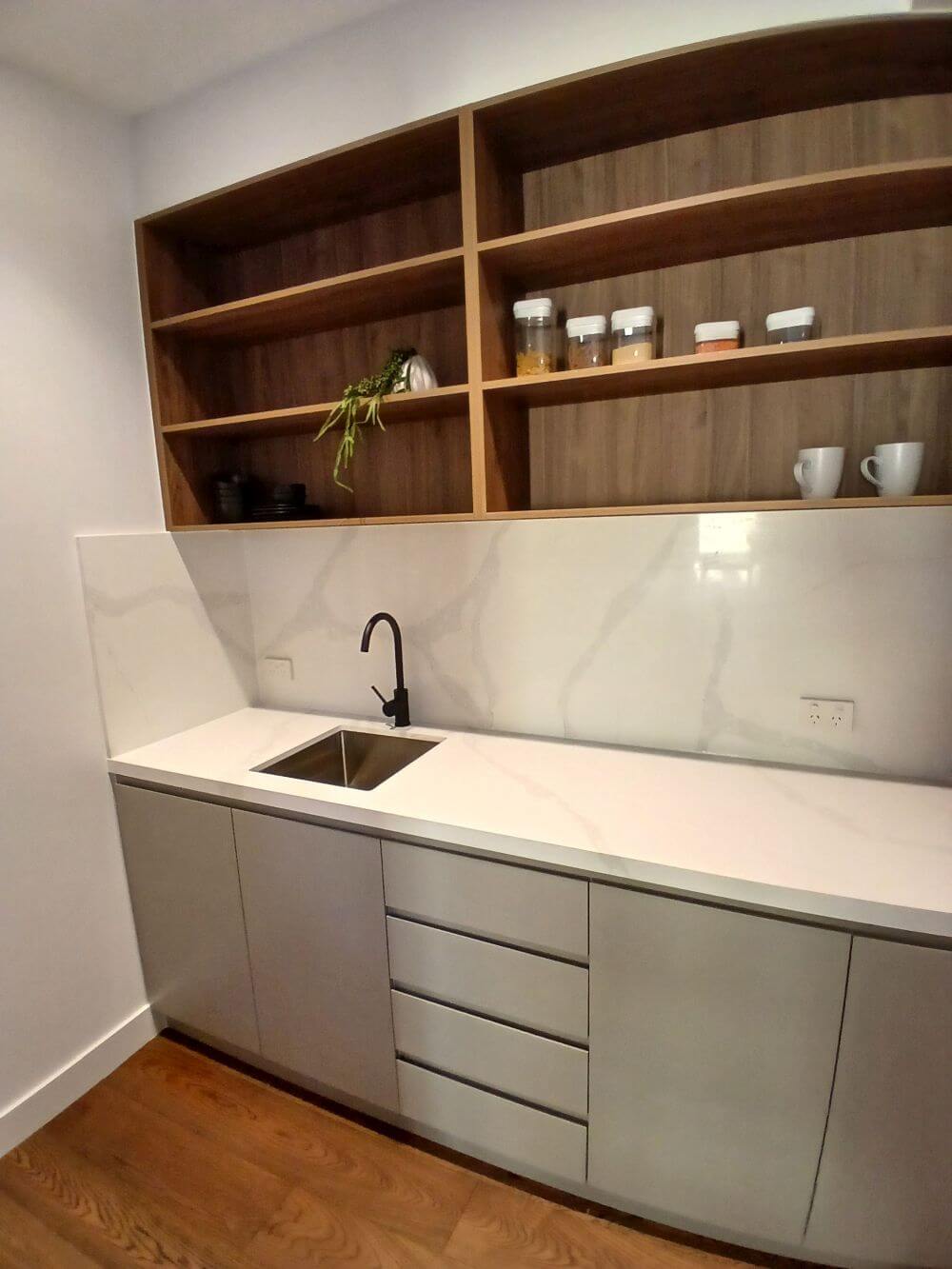 In the kitchen, our focus was on creating clean, professional caulking around countertops, splashbacks, and sinks. This attention to detail ensures a seamless, cohesive appearance while providing added durability in high-use areas. The finished look is both elegant and functional.